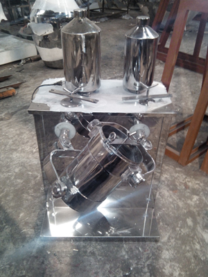 該機用于制藥、化工、食品、輕工、電子、機械、礦冶、國防工業(yè)以及各科研單位的粉狀、顆粒狀物料的高均勻度混合。該機的混合筒多方向運動(dòng),物料無(wú)離心力作用,無(wú)比重偏析及分層、積聚現象,各組分可有懸殊的重量比,混合率達99.9%以上,是目前各種混合機中的一種較理想的產(chǎn)品。筒體裝料率大,最高可達80%(普通混合機僅為40%),效率高,混合時(shí)間短。